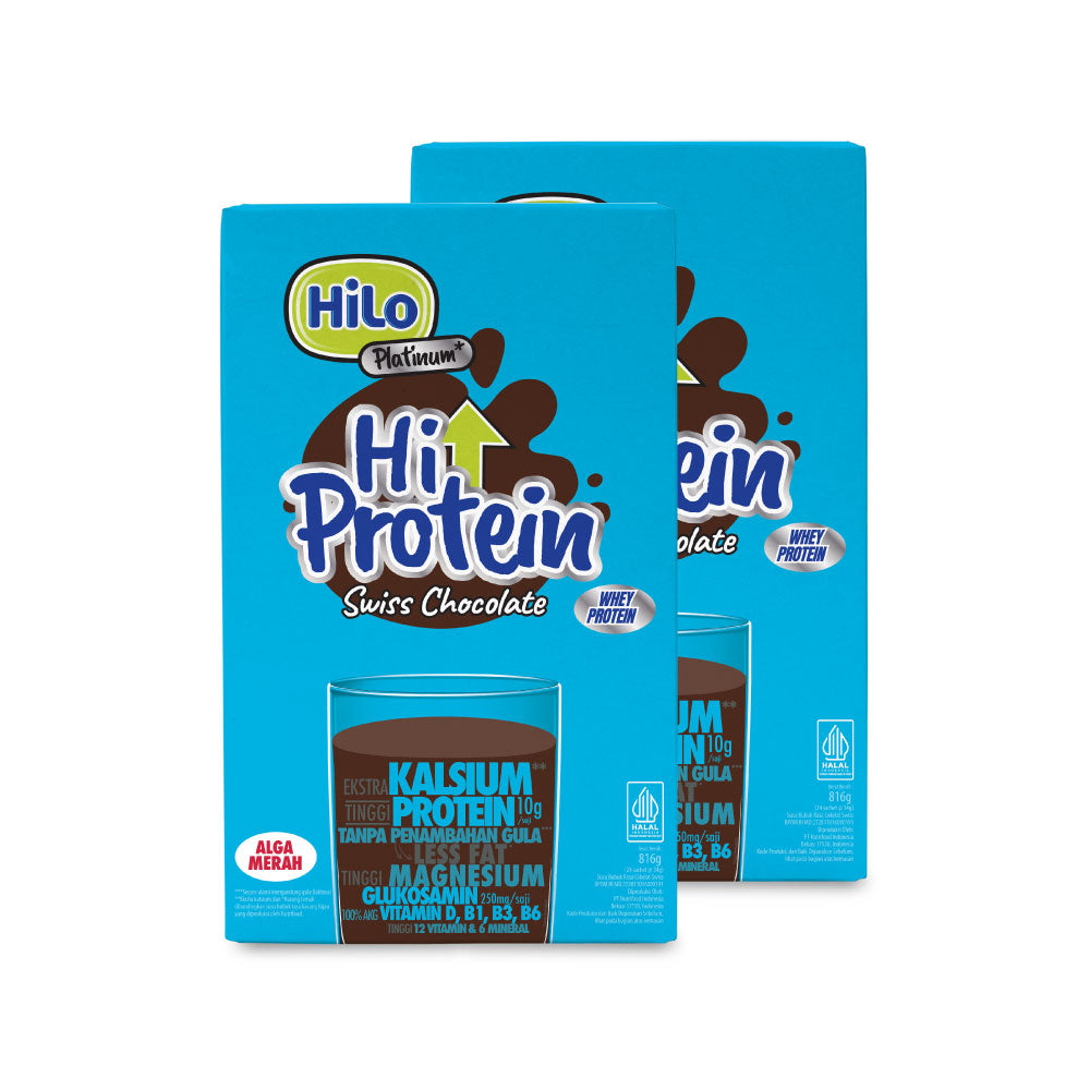 Twin Pack - HiLo Platinum Swiss Chocolate 24 Sch (2 Pcs) - Susu Dewasa Anti Pegal Lebih Tinggi Kalsium Protein Paling Lengkap