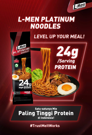 [PRE ORDER] Six Pack - L-Men Platinum Noodle Semur Daging dengan 24g protein / saji (6 Pcs) - Mie Instant Panggang tidak Digoreng